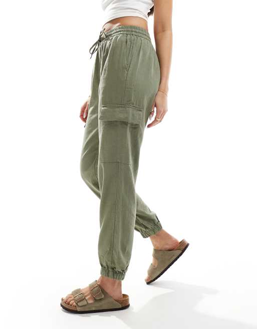 ONLY – Cargohose aus Leinenmix in Khaki