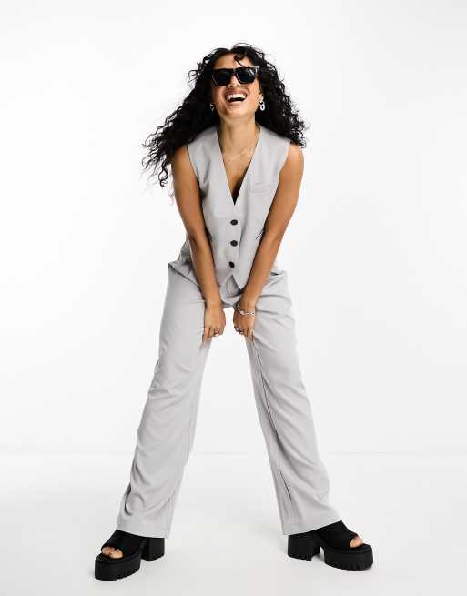 Only – Elegante Hose in Grau mit Kontrastbund, Kombiteil