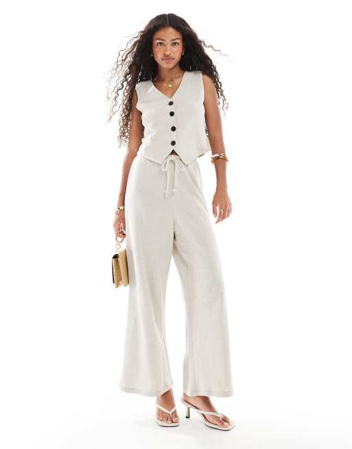 ONLY – Elegante Hose in Steinbeige mit weitem Bein und Strukturmuster, Kombiteil