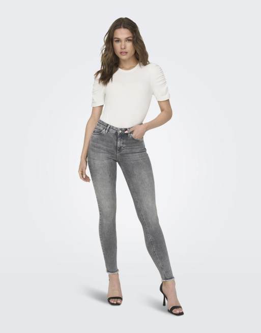 ONLY – Enge Jeans aus Denim in Grau