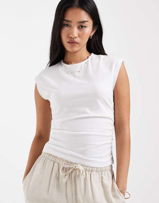 ONLY – Gerafftes, ärmelloses Oberteil in Weiß