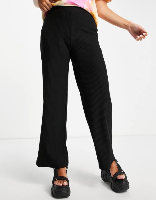 Only – Gerippte Hose in Schwarz mit weitem Bein