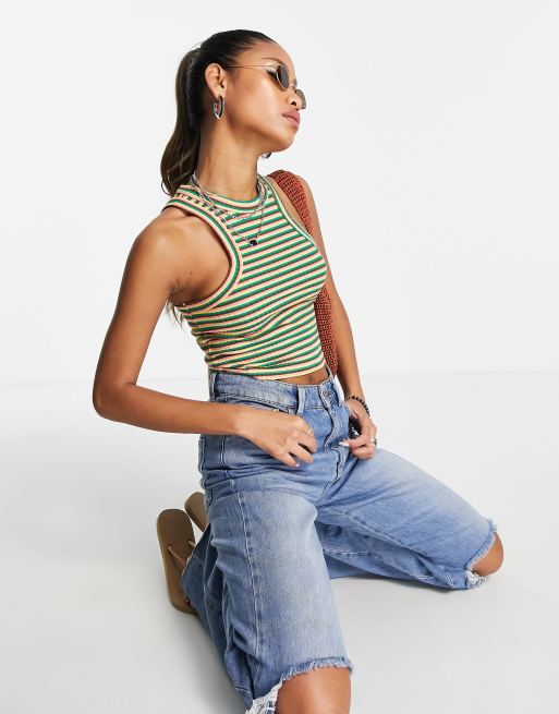 Only – Geripptes, buntes Trägertop mit Ringerausschnitt