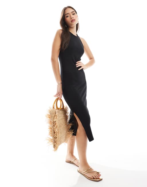 Only – Geripptes Midikleid in Schwarz mit Racer-Ausschnitt