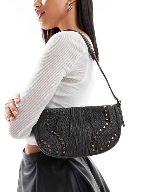 Only – Jeans-Handtasche in verwaschenem Grau mit Nietendetail