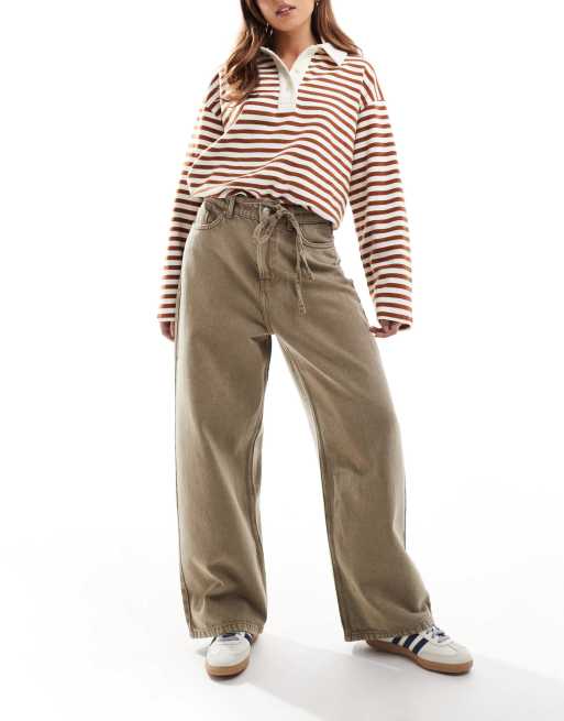 ONLY – Jeans in verwaschenem Braun mit weitem Bein