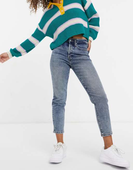 Only – Josie – Jeans mit schmalem Bein und hohem Bund in Mittelblau