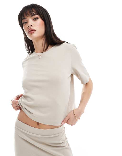 ONLY – Kastiges Jersey-Oberteil in Steinbeige, Kombiteil