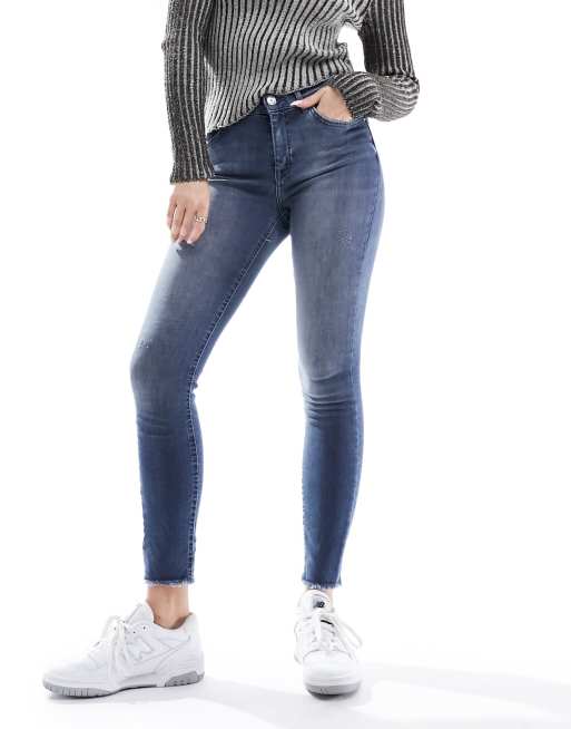 ONLY – Knöchellange Jeans mit engem Schnitt aus blaugrauem Denim