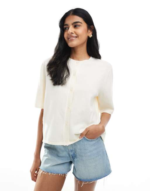 ONLY – Kurzärmlige Strickjacke in Creme