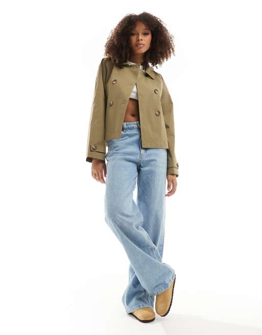 Only – Kurzer Trenchcoat in Khaki