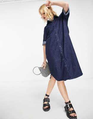 Only – Lang geschnittenes Oversize-Midikleid aus dunkelblauem Denim