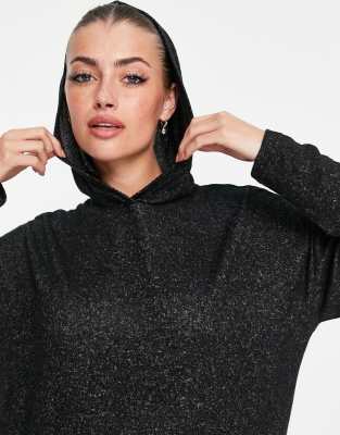 Only – Langärmliges, kastiges Jersey-Oberteil mit Kapuze in dunkelgrau meliert