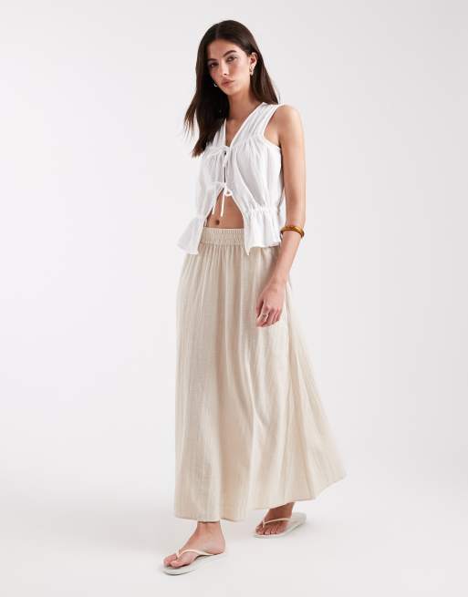 ONLY – Midaxi-Rock in beiger Leinenoptik