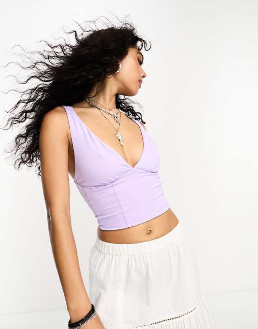 Only – Oberteil in Flieder mit kurzem Schnitt und V-Ausschnitt