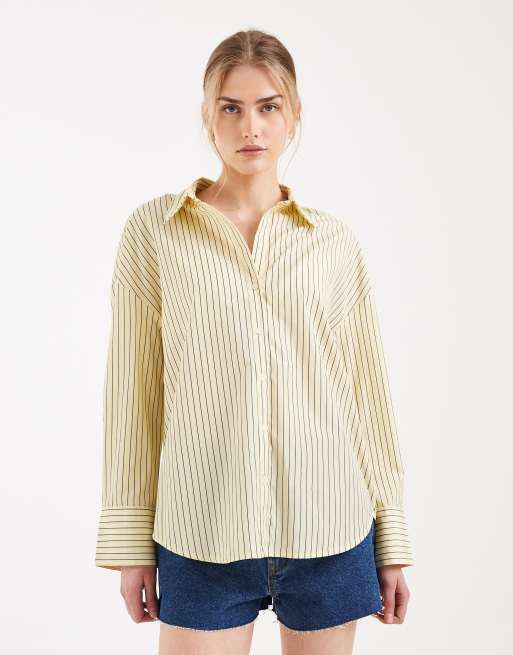 ONLY – Oversize-Hemdbluse in gestreiftem Hellgelb