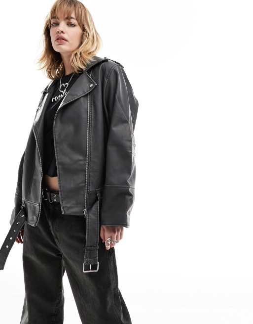 Only – Oversize-Jacke aus Kunstleder in verwaschenem Schwarz
