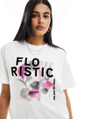 Only – Oversize-T-Shirt in Weiß mit Blumen-Grafikprint