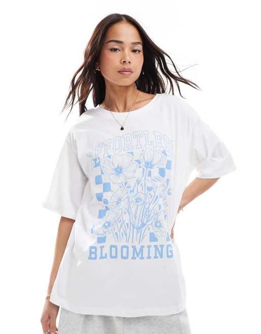 ONLY – Oversize-T-Shirt in Weiß mit Blumen-Print