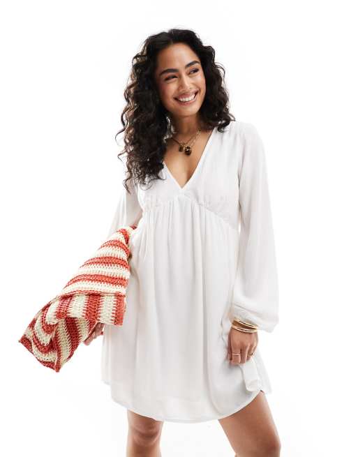 ONLY – Plissiertes Minikleid in Weiß mit weiten Ärmeln