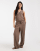 ONLY – Set in Hellbraun bestehend aus Oberteil mit Bindedetail und Hose mit weitem Bein