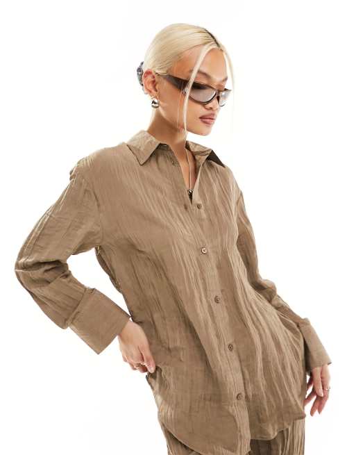 ONLY – Strukturierte Hemdbluse in Hellbraun, Kombiteil