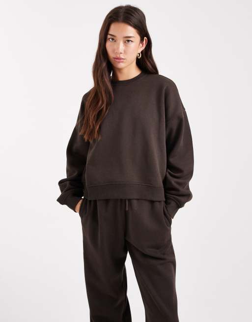 ONLY – Sweatshirt in Schokobraun mit überschnittenen Schultern und Rundhalsausschnitt, Kombiteil