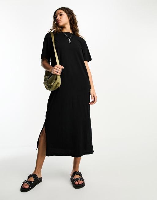 Only – T-Shirt-Maxikleid in Oversize-Passform in Schwarz