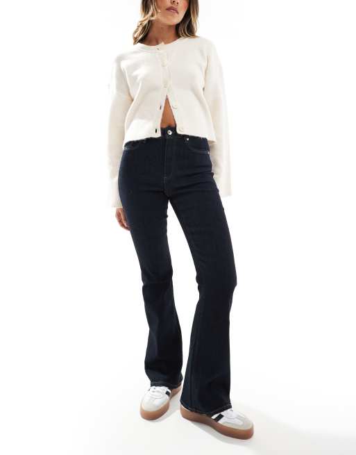 ONLY – Wauw – Schlagjeans in Dunkelblau mit hohem Bund