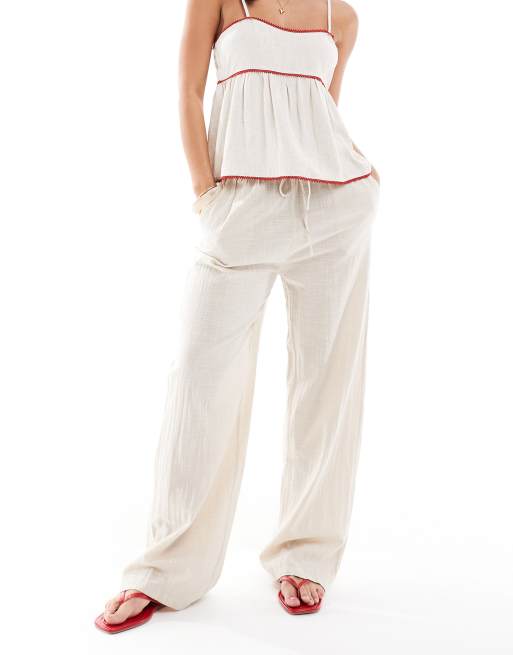 ONLY – Weite Hose in Beige mit Leinen-Optik