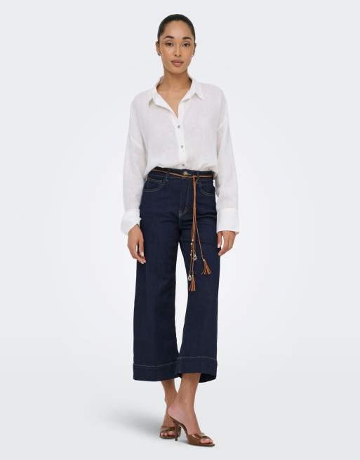 ONLY – Wide-Fit-Jeans aus dunkelblauem Denim