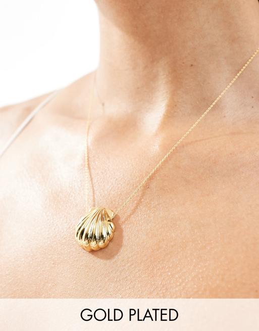 Orelia – Fädel-Halskette in Blassgold mit vergoldetem Muschelanhänger in gewölbter Optik