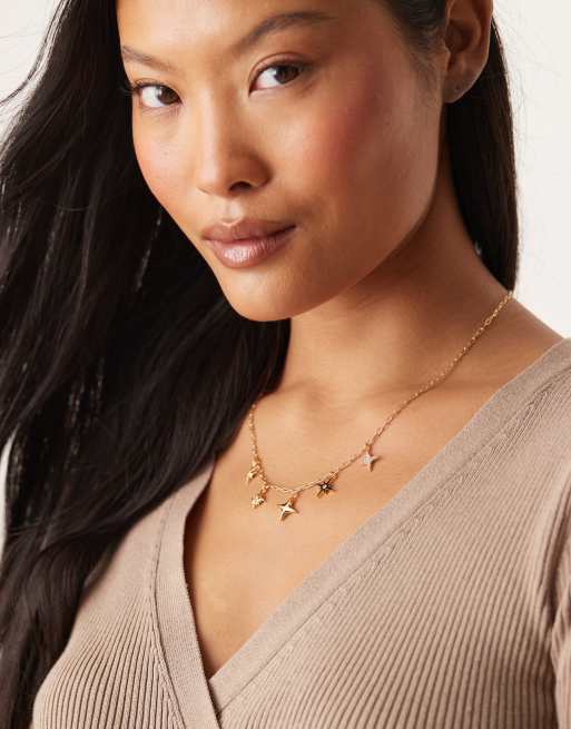 Orelia – Halskette mit 18-Karat-Vergoldung und gemischten Stern-Anhängern