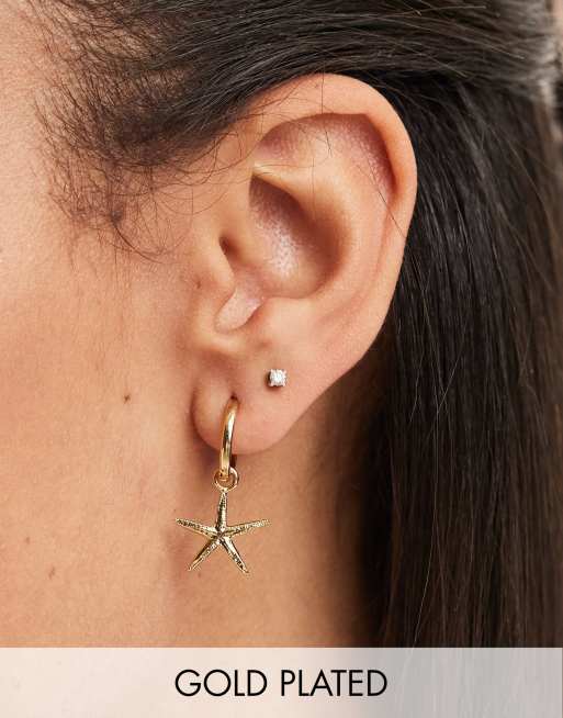 Orelia – Kleine, vergoldete Creolen in Blassgoldoptik mit Seesternanhänger