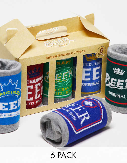 Orrsum – Sock Company – 6er-Pack mehrfarbige Socken im Weihnachts-Geschenkset mit Bier-Design