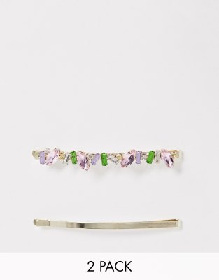 & Other Stories – 2er Packung goldfarbene, mit bunten Schmucksteinen verzierte Haarspangen