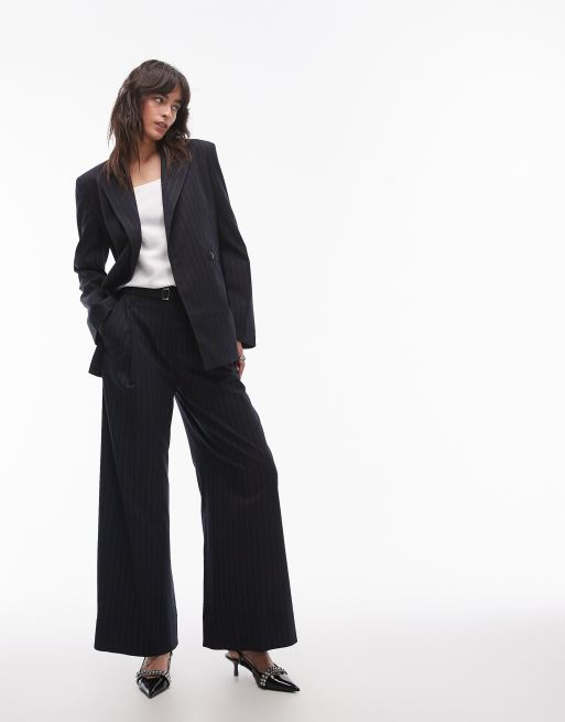 & Other Stories – Elastische Hose aus Wollmix in Blau mit Nadelstreifen und weitem Bein, Kombiteil