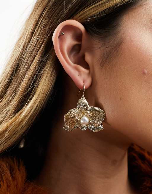 & Other Stories – Florale Statement-Ohrringe in Gold-Optik mit Kunstperlen