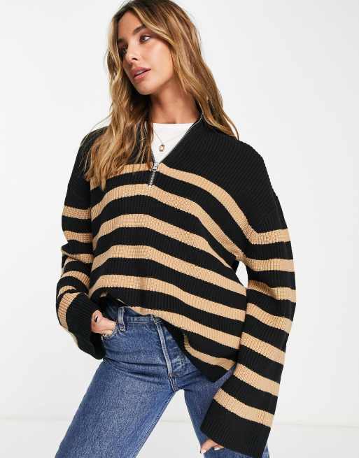 & Other Stories – Gestreifter Pullover aus Polyamid in Schwarz und Beige mit Reißverschluss - BLACK