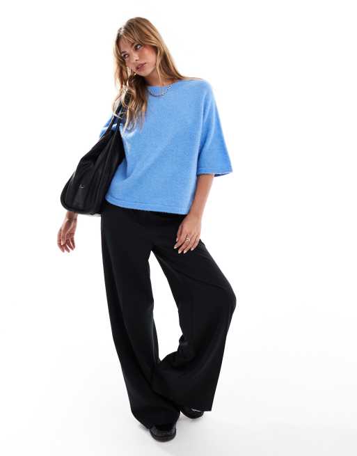 & Other Stories – Kurzärmliger Strickpullover mit Alpakawolle in Blau