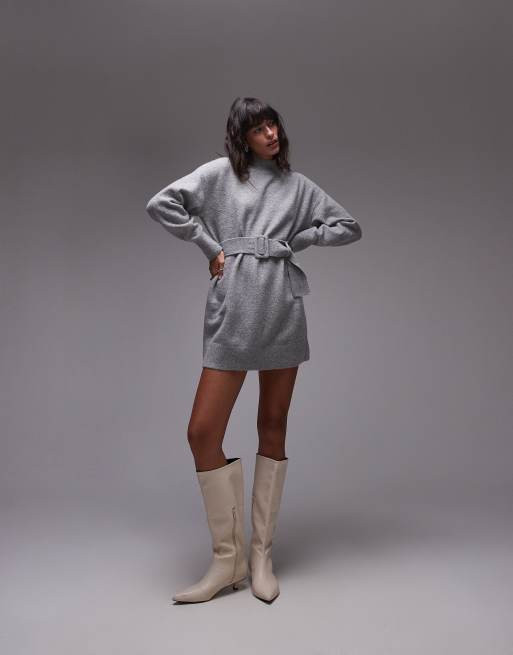 & Other Stories – Kurzes Strickkleid in Grau meliert mit Gürtel
