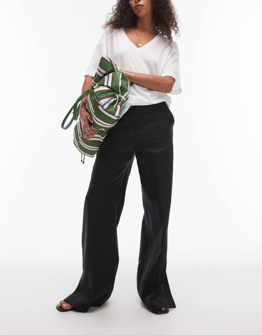 & Other Stories – Leinen-Schlupfhose in Schwarz mit weitem Bein und Bundfalten-Detail