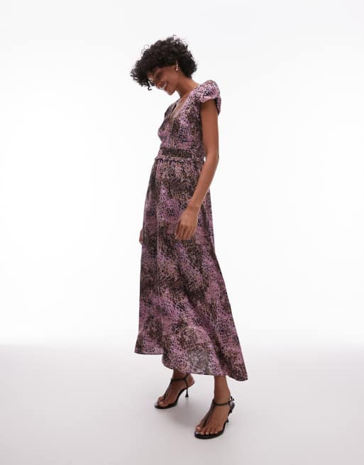 & Other Stories – Maxikleid mit gestuftem Saum, Rüschenärmeln und abstraktem Muster