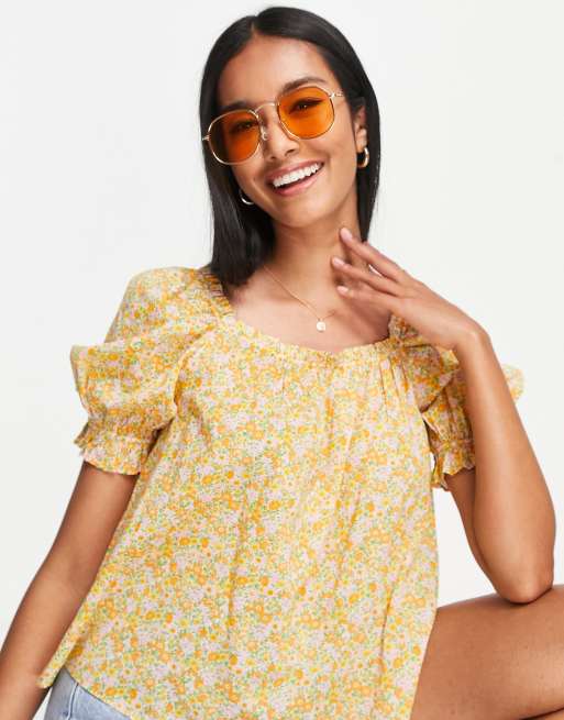 & Other Stories – Oberteil mit eckigem Ausschnitt, Puffärmeln und romantischem Blumenmuster