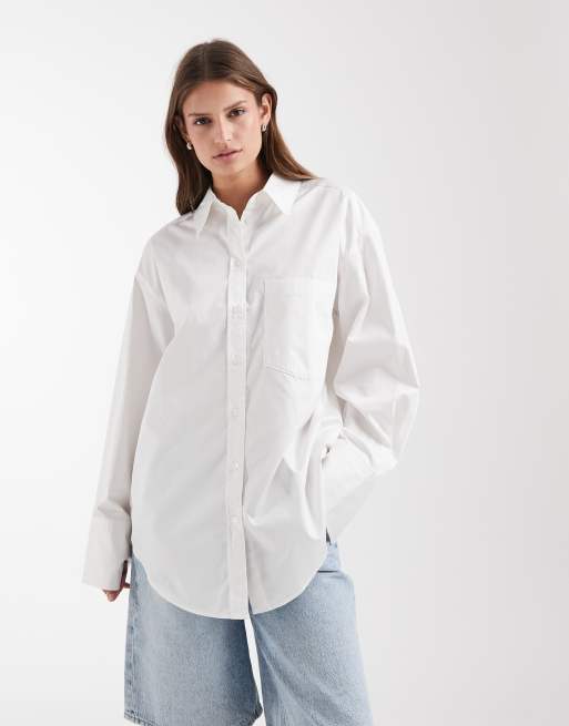 & Other Stories – Oversize-Hemdbluse aus Baumwolle in Weiß mit breiten Manschetten