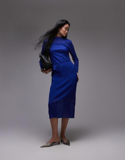 & Other Stories – Plissee-Midikleid aus Netzstoff in Blau
