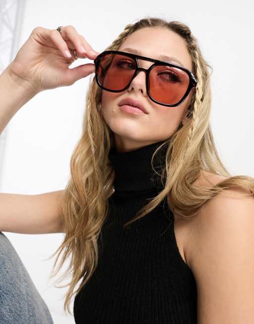 & Other Stories – Runde Oversize-Sonnenbrille in Schildpatt-Optik mit rosa Gläsern