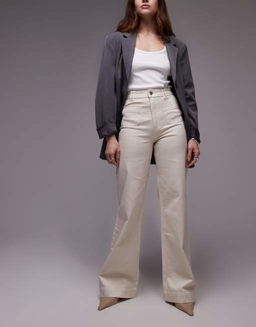 & Other Stories – Schlagjeans in Ecru mit hohem Bund und aufgesetzten Taschen