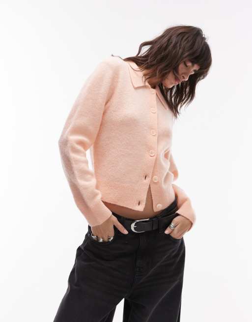 & Other Stories – Strickjacke aus Alpaka-Wollmix in Hellorange mit Kragen