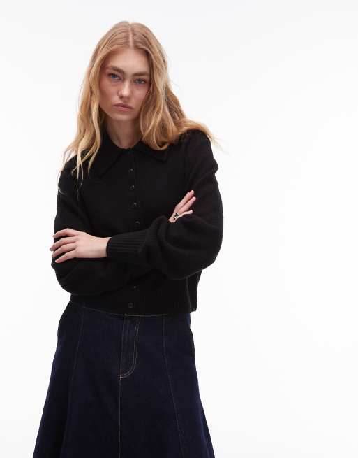 & Other Stories – Strickjacke in Schwarz mit Kragen und Knopfleiste